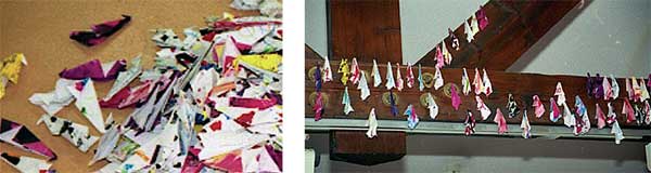 Pliages en papier réalisés par les enfants de l’école élémentaire “Les Aires“
