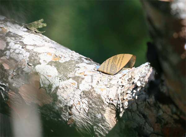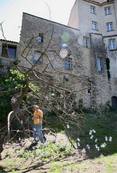 Dispersion de cigales, au château de Lauris sur le tronc des arbres et autres supports, métal, 66 x 32 x 20 mm