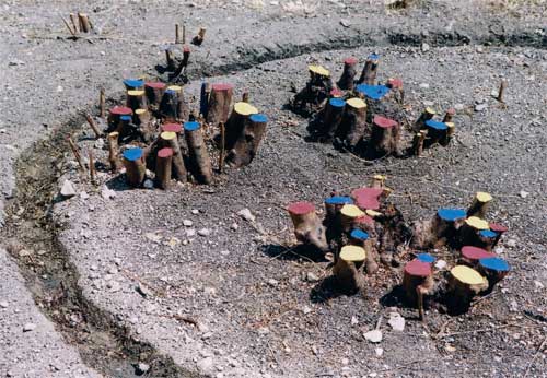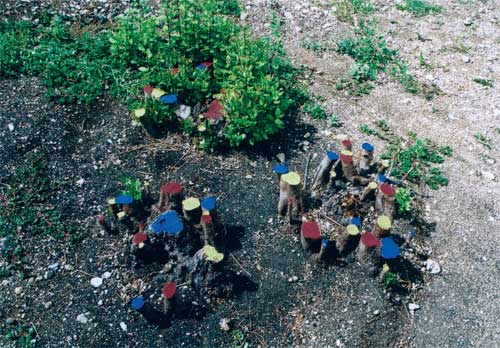 Buisson coupé, peinture, eau (arrosage journalier du cercle)