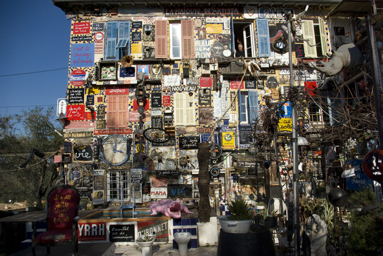 1977 : La façade de ma maison commence à se remplir et bien que j'ai promis de ne pas déborder de plus d'un mètre de la maison, j'envahis petit à petit la pelouse avec des baignoires, des bidets et des cuisinières remplies de terre dans lesquelles je plante des géraniums. C'est la guerre avec Annie qui déteste les cuisinières: ça pourrit, ça s'effondre, ça se casse. Heureusement ma belle mère qui est mon alliée inconditionnelle arrose mes géraniums et leur dispense engrais et soins attentifs. |