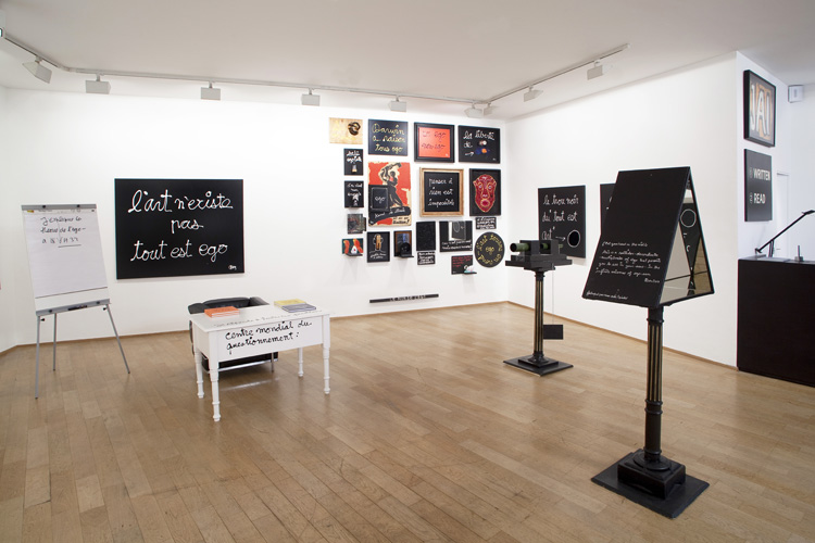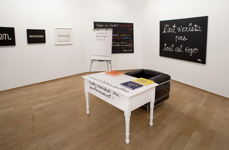 La présentation à la galerie, qui associe nouvelles pièces sur l’ego et travaux des années 1960-1977, coïncide avec la publication de l’ouvrage La théorie de l’ego aux éditions Favre.