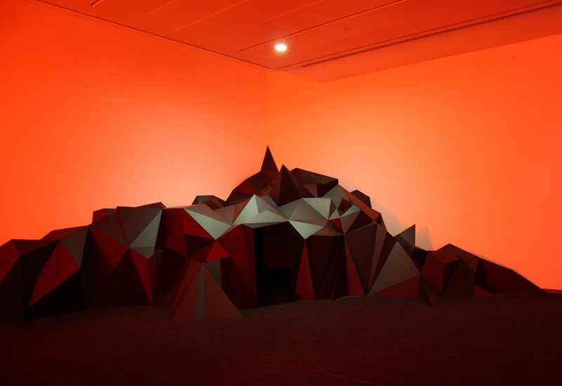 Dreamland se présente comme une architecture-paysage faite de plis et de recoins, évoquant la caverne ou la grotte primitive. La découpe franche de ses contours et leur opacité reprennent l’enveloppe des avions furtifs de l’armée américaine. Appelé ainsi à devenir «indétectable», Dreamland formule le projet d’une construction qui s’efface littéralement, à rebours d’un monde où l’architecture est un art saturé de visibilité, et dont l’ambition première est de se dresser, de se montrer, de faire face. Ce paysage de l’invisible dans lequel chacun peut venir se cacher s’entrevoit également comme le contrepoint total du Dreamland de Coney Island, le tout premier parc d’attractions inauguré en 1904 près de New-York, manifeste du divertissement de masse et de la théâtralisation de l’espace. Dreamland, c’est également le nom donné à la zone 51, dans le désert du Nevada. Une zone où l’armée américaine fabrique ses avions furtifs et qui n’apparaît sur aucune carte officielle. |