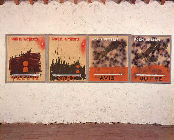 Quatre planches, 85 x 70 cm, peinture sur papier journal marouflé sur toile