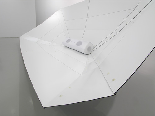 La pièce monumentale mise en place en 2005 au CapcMusée de Bordeaux en est l’illustration emblématique par la dimension de son inscription dans l’espace d’une part et d’autre part par le temps donné à son élaboration. Cette immense construction dont l’architecture modulaire était régie par les lois de la géométrie acoustique présentait une ampleur visuelle inversement proportionnelle à la discrétion de la matière sonore qui en émanait. Le son diffusé provenait en effet des “sécrétions acoustiques” (Christophe Kihm-catalogue de l’exposition) captées par l’artiste pendant deux ans dans le bâtiment même. Cette “respiration secrète d’une architecture” (Didier Arnaudet - Art Press) saisie par les enregistrements en ultra-basse fréquence était ainsi restituée à l’échelle du lieu par l’installation.