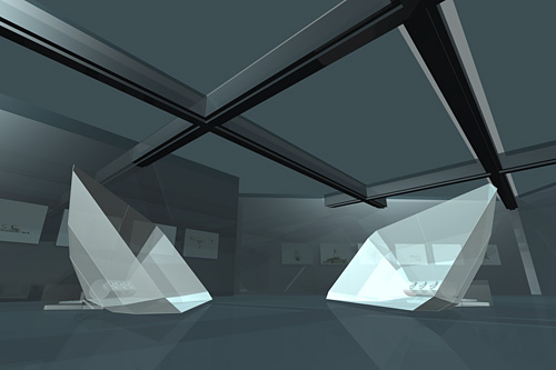 Croquis de projet, technique numérique 3D Image de synthèse de l’installation sonore, tirage Lambda contrecollé sur Dibon, 41 x 62 cm