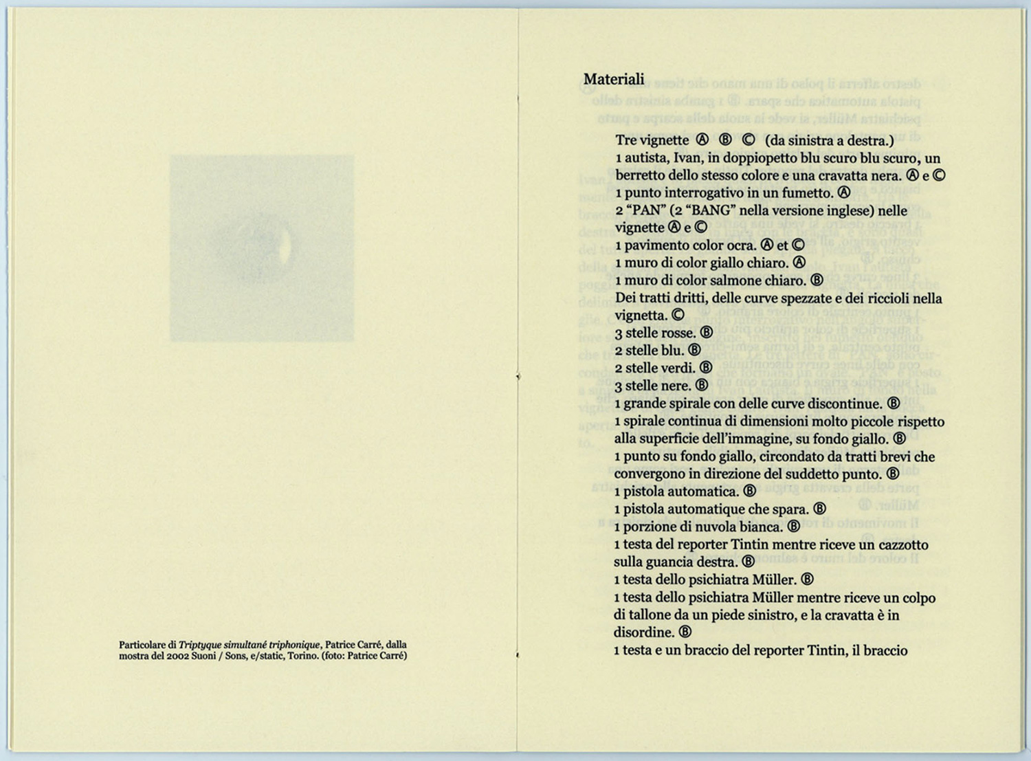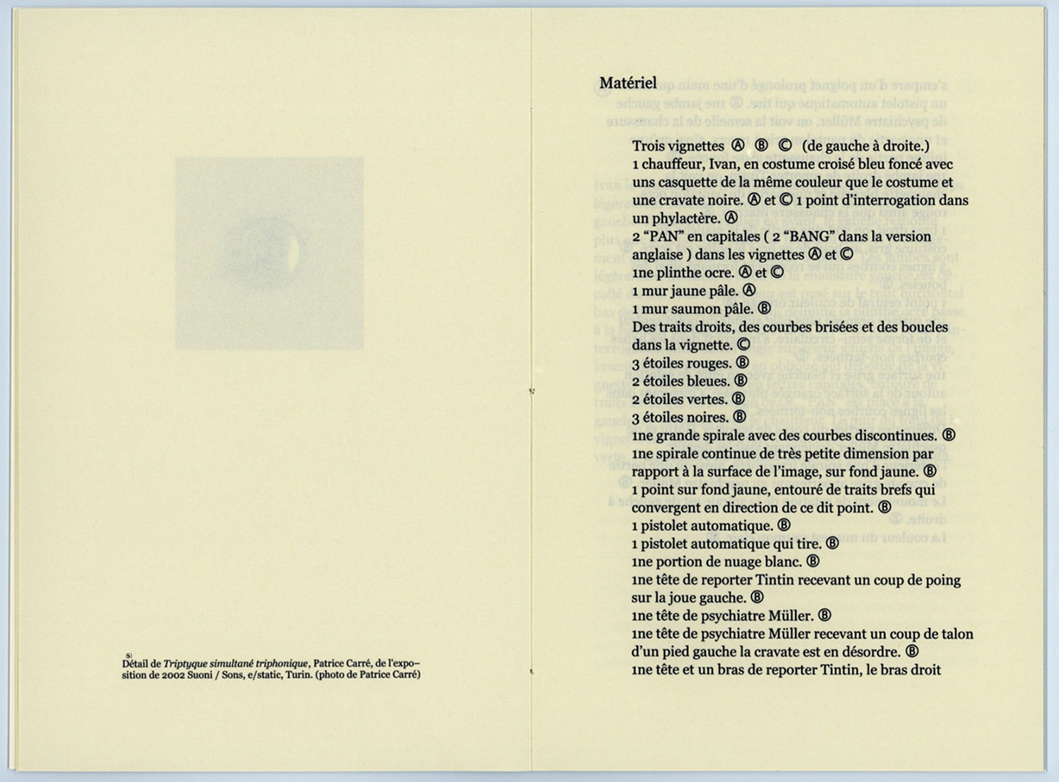 Triptyque simultané triphonique est un texte qui décrit sans psychologie 3 cases qui s’enchainent dans l’album L’Ile Noire d’Hergé, page 16.
