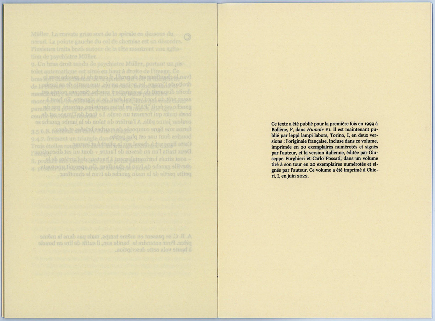 20 exemplaires en Italien, 20 exemplaires en Français. Signés et numérotés. Format 19 x 13 cm