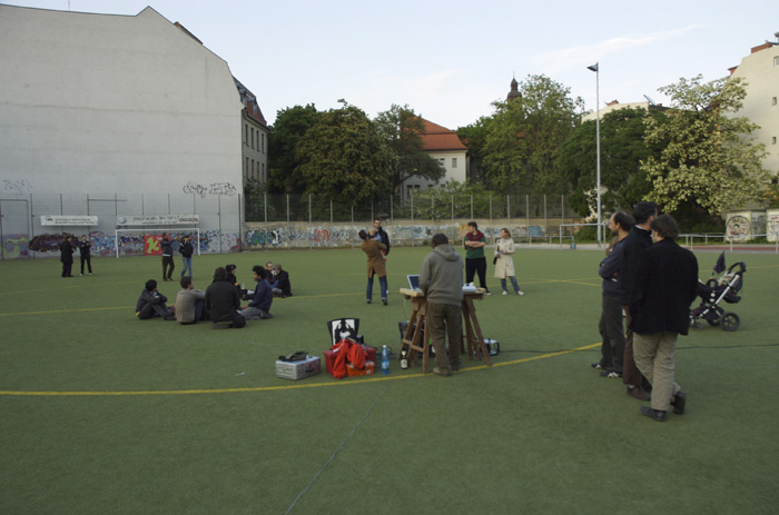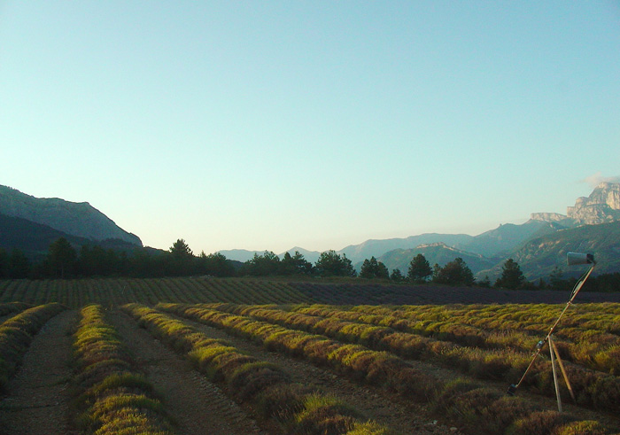 La proposition sonore s’inscrit dans la durée et dans le paysage. La diffusion sonore quadriphonique est déployée sur 1 à 4 hectares : les sons circulent et couvrent cette étendue, l’occupent, la trace et la forment. il s’agit de construire et de délimiter l’espace spécifiquement par le son, sans recourir à l’architecture ou la topographie. L’espace sonore est construit en direct sur des mouvements, des trajectoires et des matières, conférant une dimension sculpturale au champ sonore. |