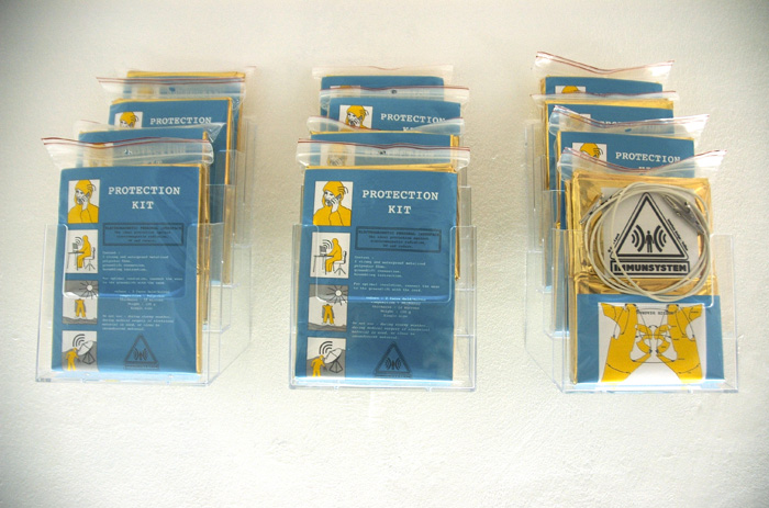 Immun Protection Kit est un kit de protection à assembler soi-même. Le kit contient 2 feuilles de film polyester métalisé avec le plan de découpe du patron tracé dessus, un mode d’emploi pour réaliser l’assemblage et un cable électrique muni de pince crocodiles pour se relier à la terre et augmenter l’efficacité de l’isolation au champ électromagnétique. |