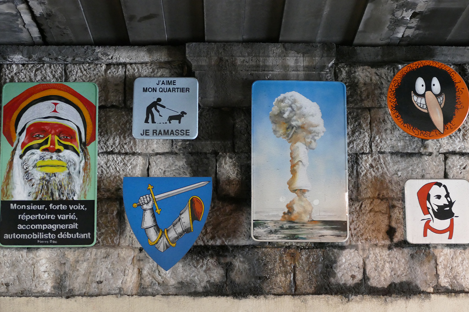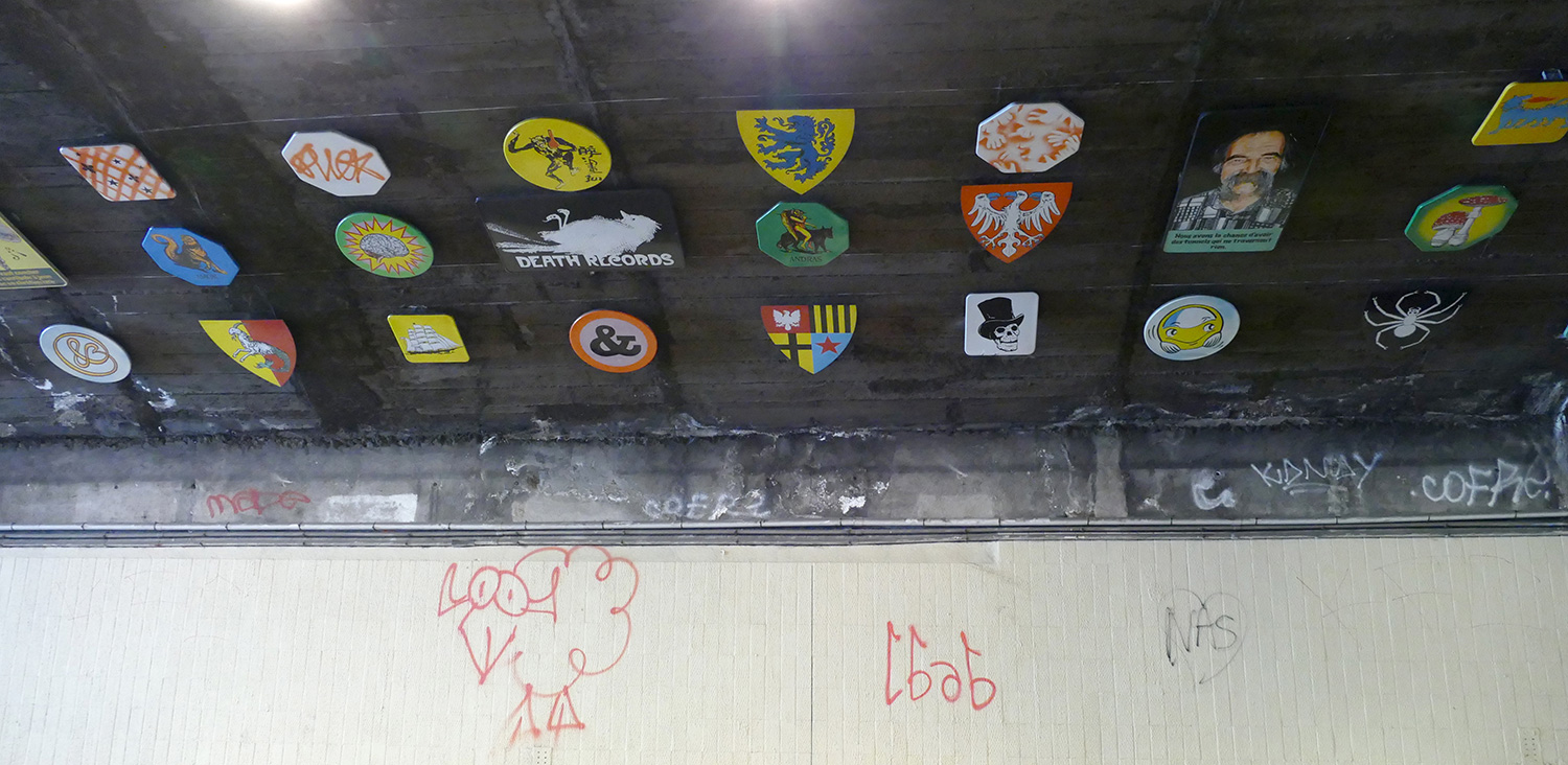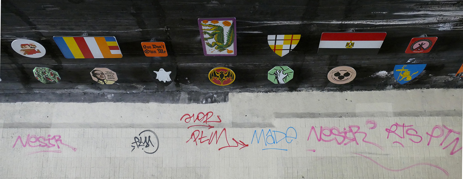 | À partir de son travail iconographique qui mixe très souvent signes, symboles, images indexées à l'histoire aussi bien que ceux de la bande dessinée, le graffiti, tatouages, logos tribaux, l'artiste Frédéric Clavère propose d'installer un ensemble de panneaux peints, à la manière d'une caverne de hiéroglyphes d'un genre nouveau. Une mosaïque de pictogrammes issus de son imaginaire et de celui des habitants ou usagers du quartier. |