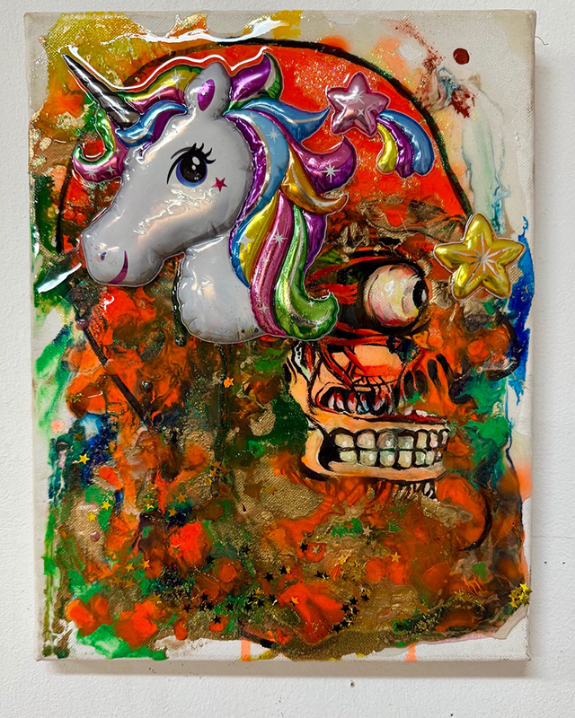 Licorne, acrylique, huile et résine sur toile, 30x24cm |