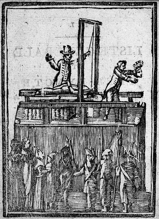 | Anonyme, exécution capitale par décapitation, échafaud de la guillotine, gravure, 1794 |
