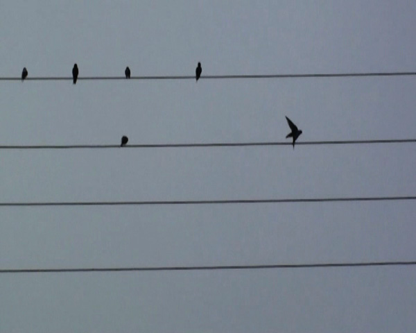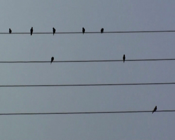 Interprétation électro d’une partition d’étourneaux sur leurs câbles haute tension