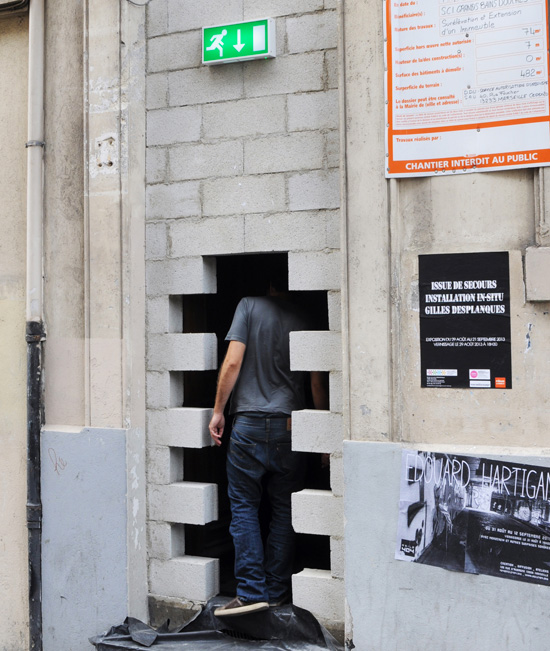 A cette occasion Gilles Desplanques s’approprie l’espace architectural de la galerie et la transforme en un lieu aux contours mal définis, en jouant sur l’actualité de la rénovation du lieu. Un chantier comme processus de création où le doute s’installe quant à la nature et la destination du lieu. Une invitation à pénétrer entre.