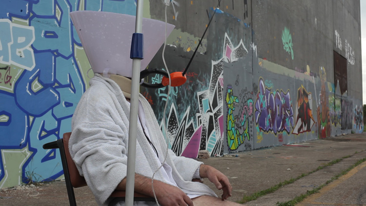 Un homme-lampe sous perfusion est le gardien d’un parc un peu particulier où les enfants viennent jouer. L’homme est accompagné d’un drone. Ils se tiennent l’un l’autre en laisse. Ce bâtiment abandonné devient le théâtre d’un jeu étrange.