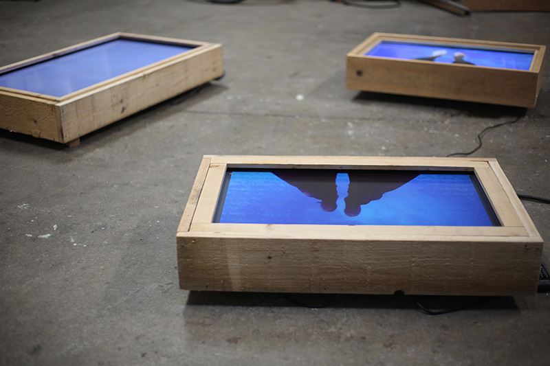 Sur certains écrans, des corps oscillent en apesanteur dans la mer.