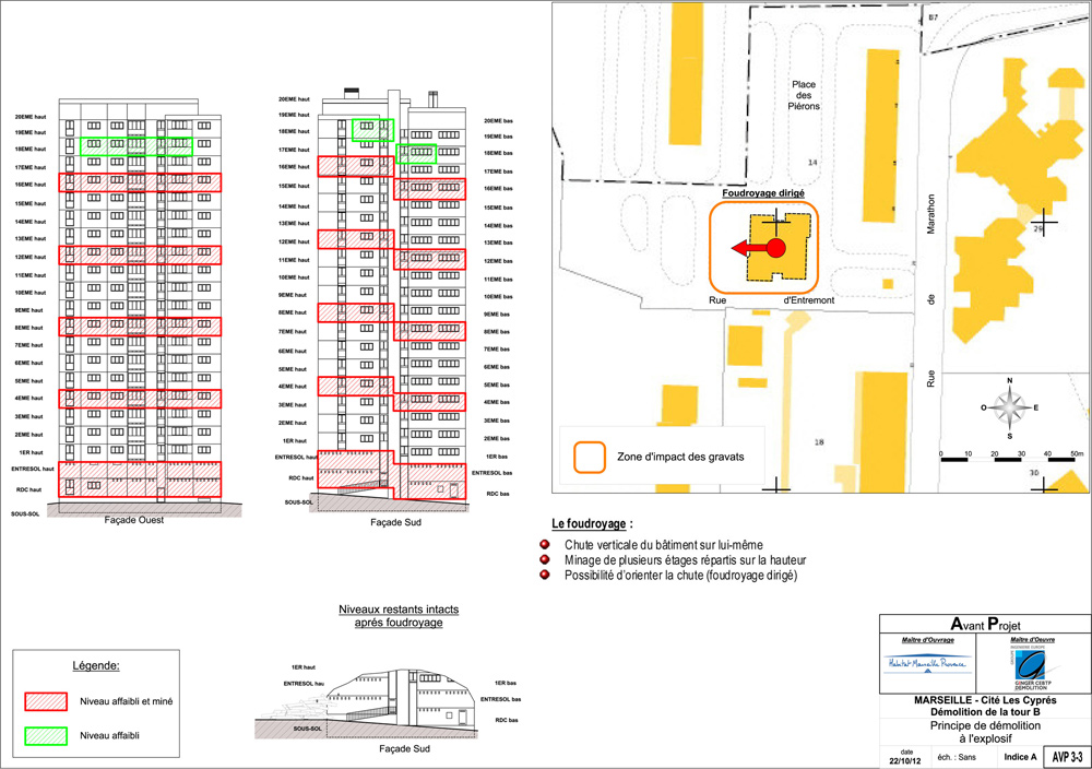 À consulter : Extraits de l’étude de faisabilité de la démolition par foudroyage intégral de la tour des Cyprès B. Documents GINGER-CEBTP DÉMOLITION.