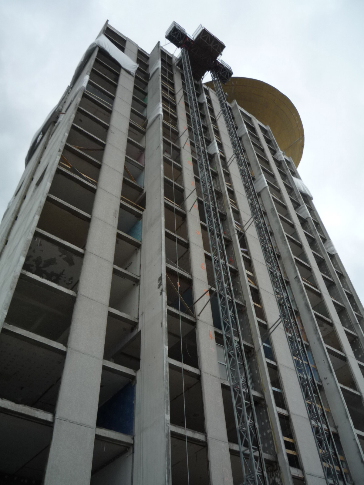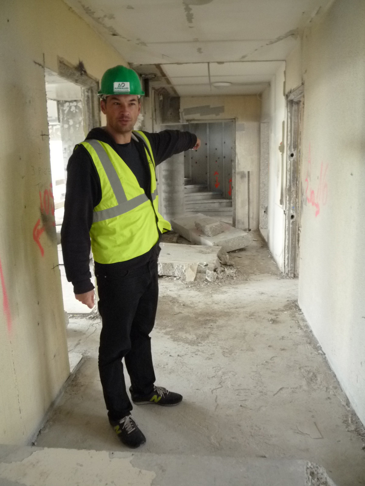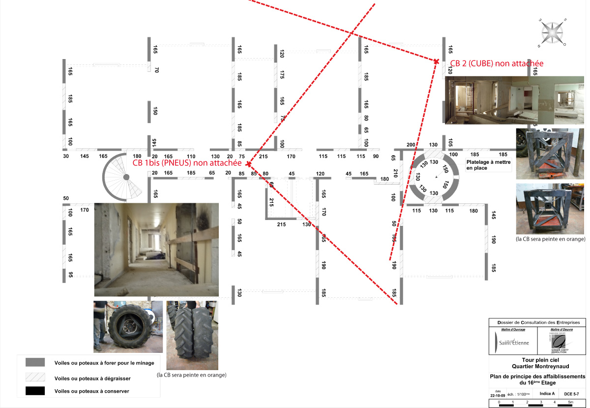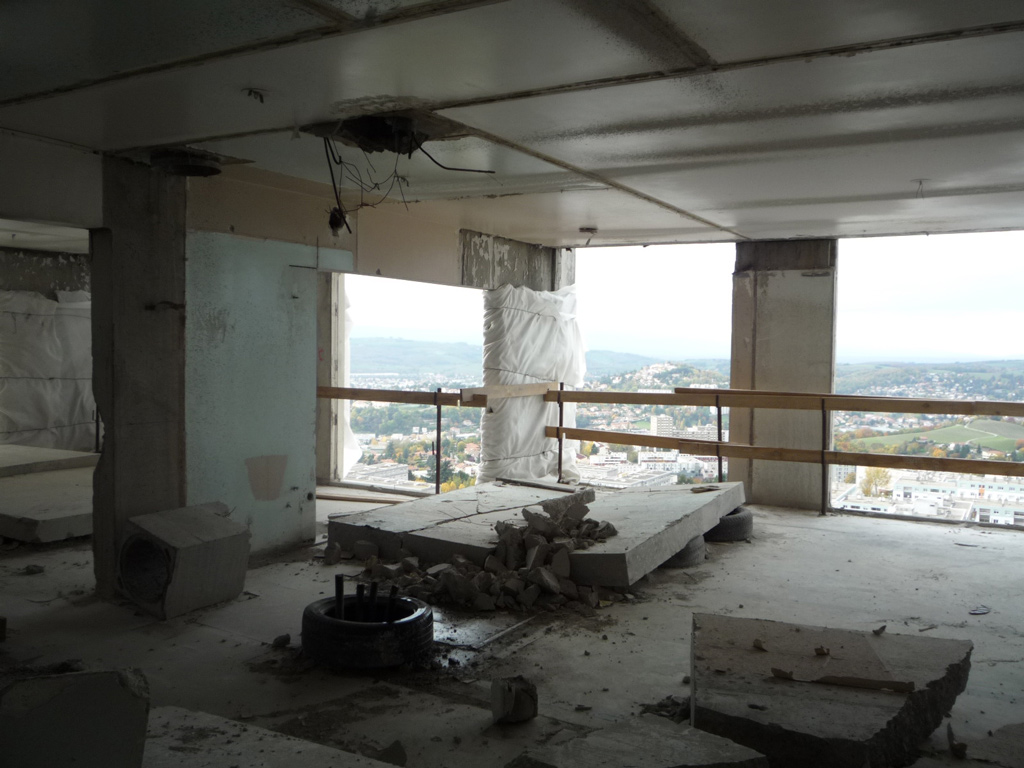 Le 2 novembre à 14h30, l’équipe Crash Box s’est rendue sur le chantier de démolition de la Tour Plein Ciel dans le quartier de Montreynaud à Saint-Étienne. Il s’agissait, avec GINGER - CEBTP DÉMOLITION et ARNAUD DÉMOLITION, d’établir le protocole d’intervention Crash Box (foudroyage prévu le 24/11/2011 à 10h45) et de déterminer les emplacements précis des crash box.