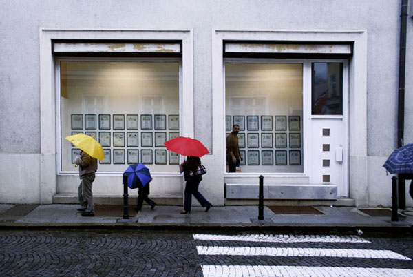 À partir de deux catalogues d’un promoteur immobilier yougoslave de la fin des années 70 (identiques mais de qualité d’impression différente), Anne-Valérie Gasc et Gilles Desplanques procèdent à un méthodique et minutieux travail de découpage et de collage afin de reconstituer chaque modèle de cette architecture stéréotypée tel qu’il exploserait au moment d’un impact armé.