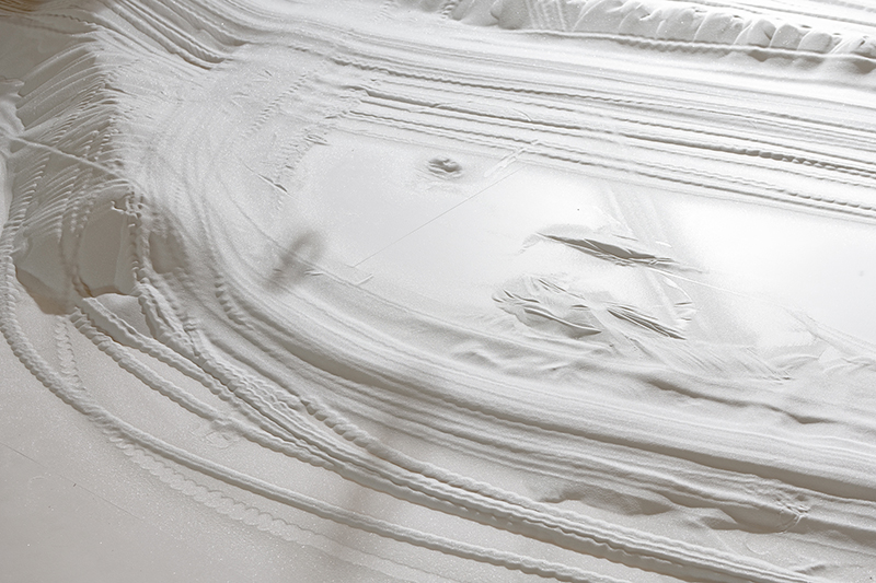 Vitrifications consiste en une tentative d'édification robotique, à l'échelle du corps, d'un tracé généré numériquement, à partir du volume de la Grande halle du centre d'art contemporain Les Tanneries. Tout l'été 2019, la Grande halle est devenue le laboratoire d'un projet de construction d'une ruine de verre. L’œuvre est le fruit d'une démarche expérimentale poussée, artistique et technologique, menée en collaboration avec l'Inria (Institut national de recherche dédié aux sciences du numérique).