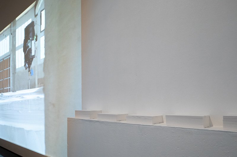 Vues de l'exposition Fabrique d’un épuisement (commissariat : Dominique Blais), galerie Michel Journiac, UFR d’Arts Plastiques et Sciences de l’Art, Université Paris 1 Panthéon-Sorbonne, Paris, 2021 |