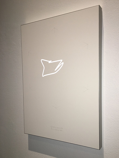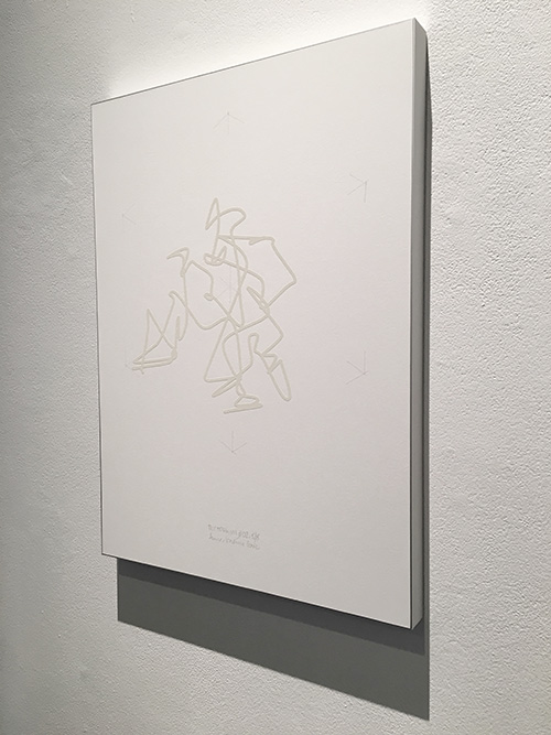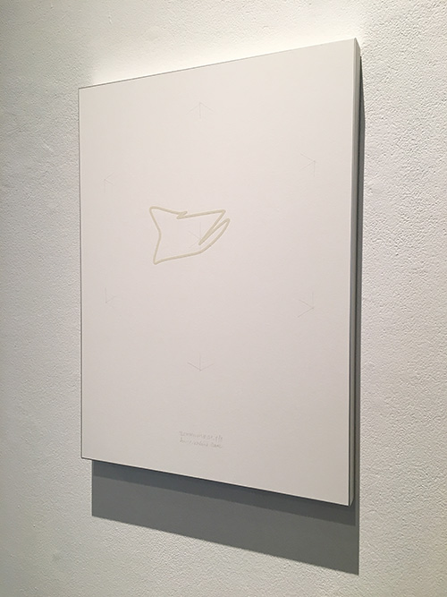 Matériau aux descriptions contradictoires, substitut à la représentation du verre en architecture, le Tectorium est un enduit aux caractéristiques troubles : à la fois homogène, compact et ultra-résistant, brillant, lumineux et opalescent. La série des sérigraphies à la poudre de verre Tectorium explore cette tension, dans la couche d’apprêt, entre matérialité du plâtrage et immatérialité de ses réfléchissements. Elle sert ici à faire apparaître, sur le papier, les tracés complexes et en 3D d’objets catadioptriques, sorte de volumes architecturaux inutiles, à construire… en verre. |