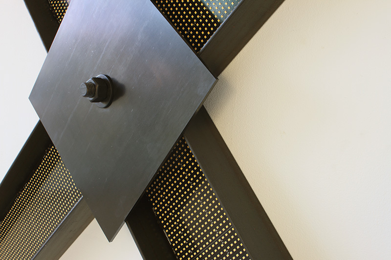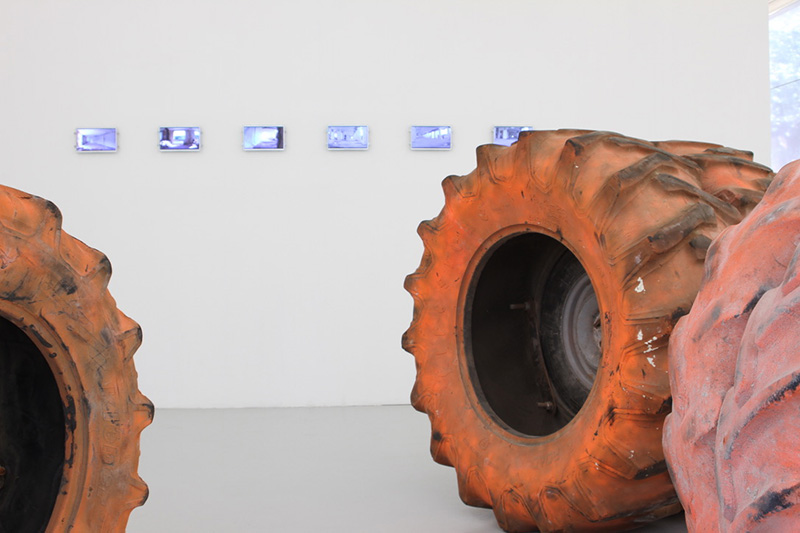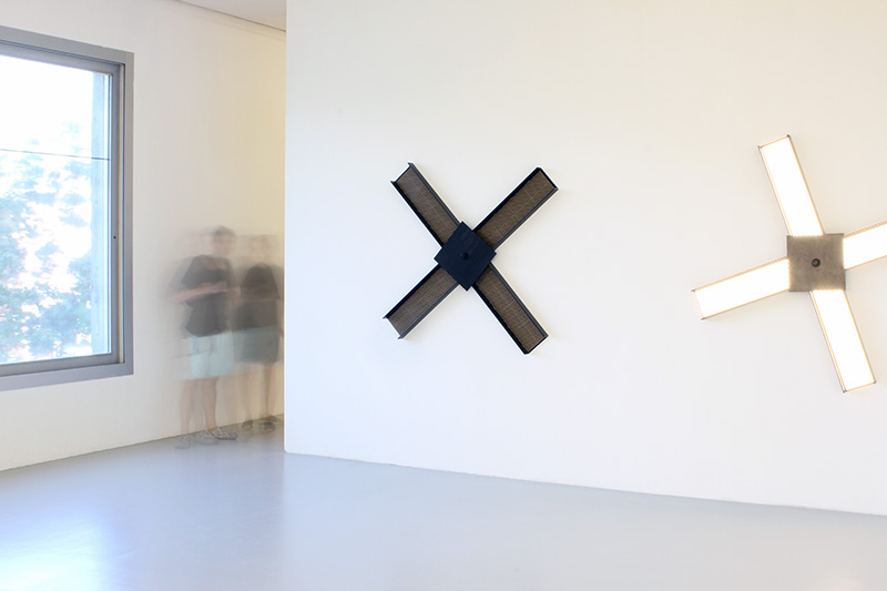 Enfin, spécialement produite pour l’exposition, l’œuvre Première ligne renvoie aux croix de Saint-André qui soutiennent souvent l'architecture vernaculaire et dont l’explosion de lumière remet en question, ici, le principe de confortement.