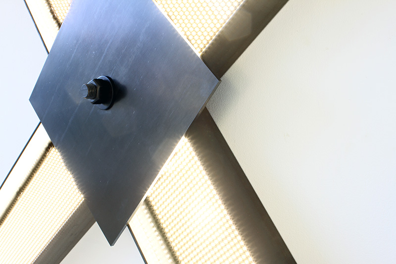 Structure acier, châssis plexiglass noir, cartes leds aluminium, leds 4000K, système électronique (alimentation, carte de contrôle)