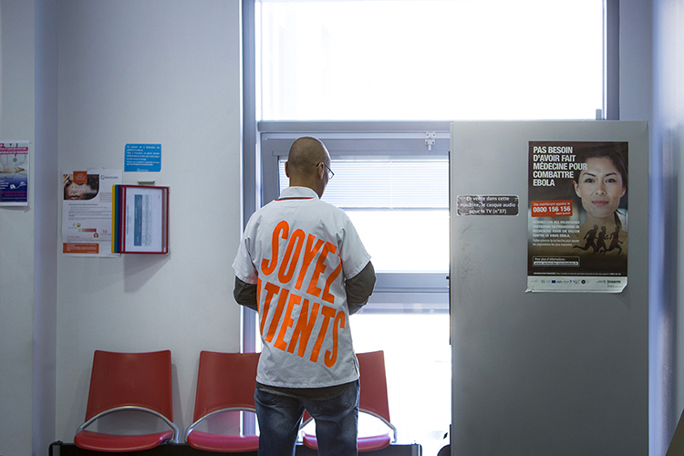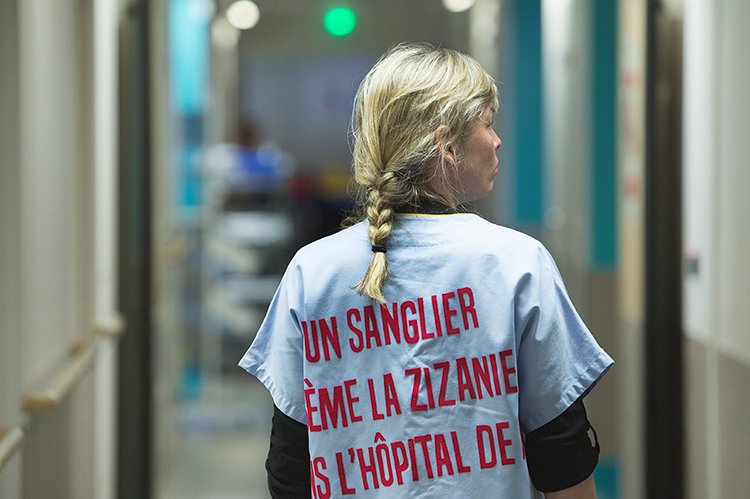 En sortant du bloc, je pense bien sûr au white cube, à cet espace dont on n’échappe pas, qu’on expose dedans ou dehors. J’essaie des trucs dans les aérogares, les stades, les stations de métro ; j’ai une tendresse particulière pour les lieux qui nous rassemblent malgré nous. Je passerai des heures à la CPAM, à la CAF, dans les zones de transit, pour dessiner dans ces espaces normés, ensemble des modules d’un grand système. Y a-t-il un espace plus public que l’hôpital? Peut-être, mais celui-ci en tous cas, on y fera tous un saut. |