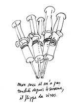 Plus de 150 dessins réalisés par l’artiste en résidence à l’hôpital Européen de Marseille réunis dans une publication édité par Fræme et Immixtion Books avec le soutien du Frac Provence-Alpes-Côte d’Azur.