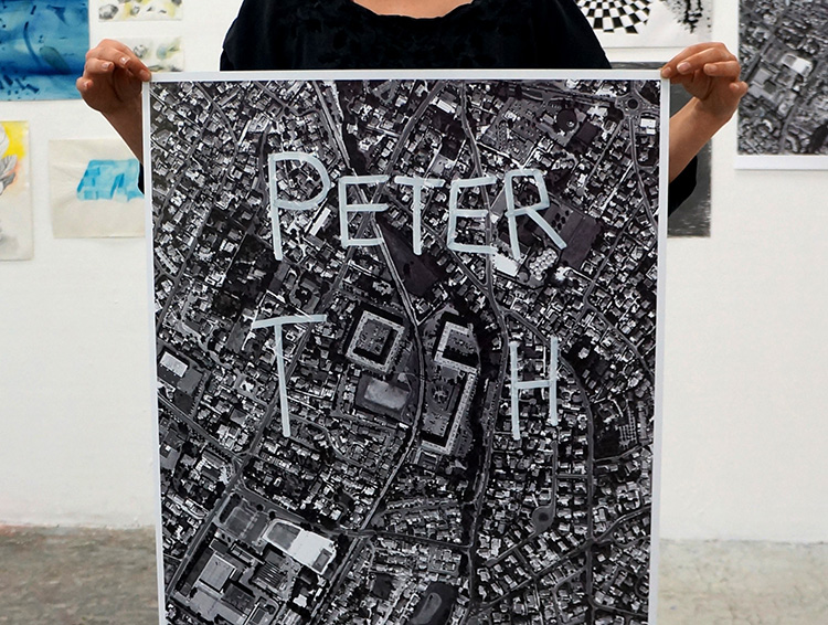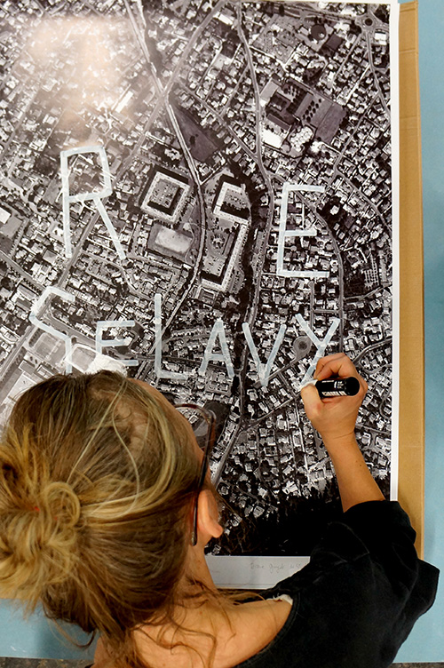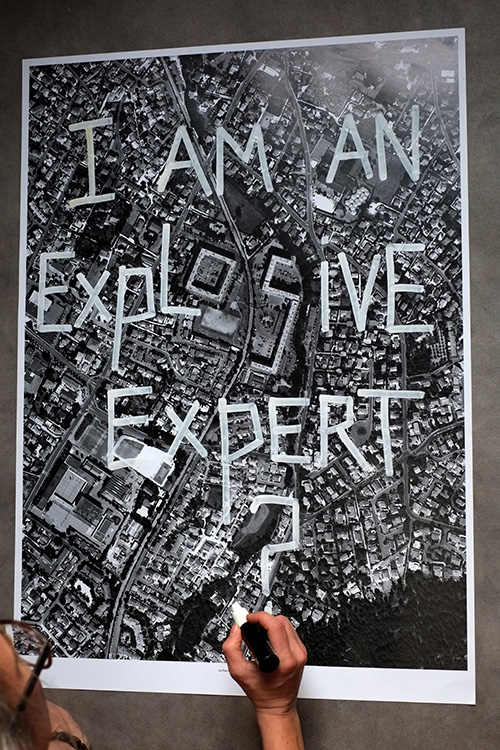 Impression offset n&b, format A1, avec inscription au posca blanc