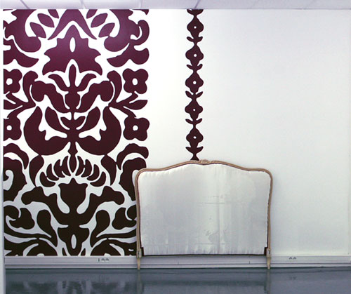 Usure sur satin sur tête de lit sur wallpainting, dimensions variables
