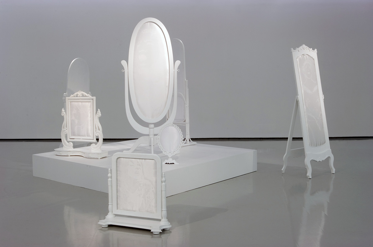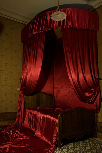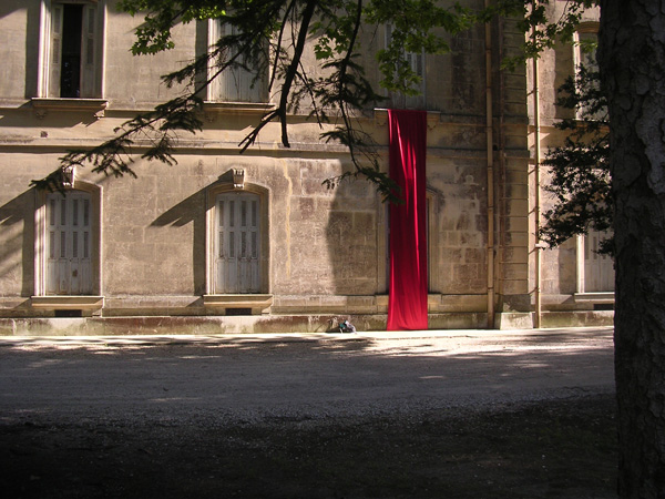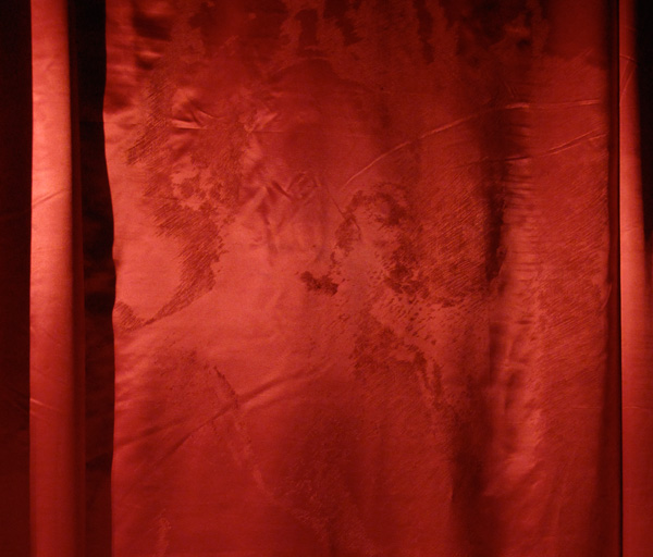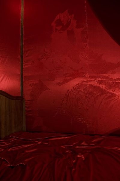 Installation, usure sur satin rouge