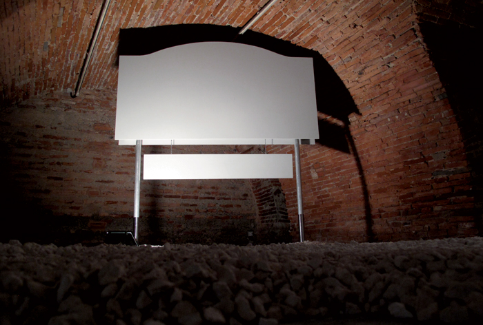 Bois, peinture (75 x 65 x 94 cm) vidéo (durée 2’27’’ en boucle) |
