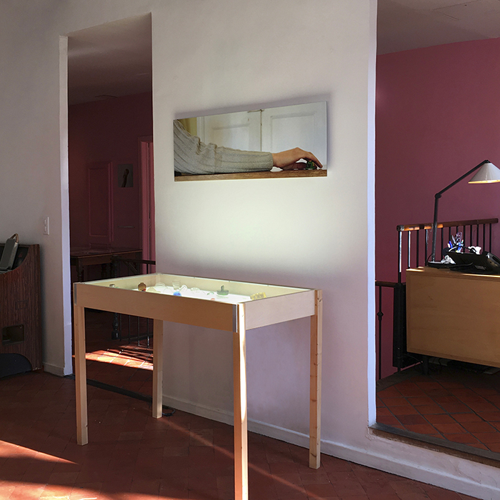 Bellevue est le titre de l’exposition qui honore l’invitation qui m’a été faite d’investir les espaces d’accueil de l’hôtel Burrhus. J’associe ce titre à l’attention bienveillante aux choses : du quotidien, glanées et trouvées ou celles d’une beauté fugace. Installations lumineuses et compositions photographiques déclinent différentes formes d’attention comme par exemple éclairer, observer, se dévouer ou cuisiner.