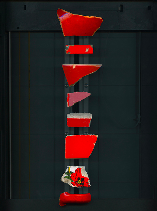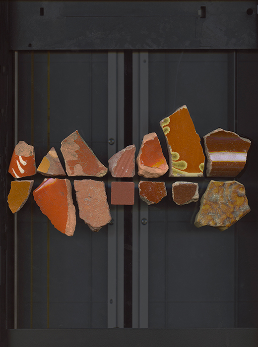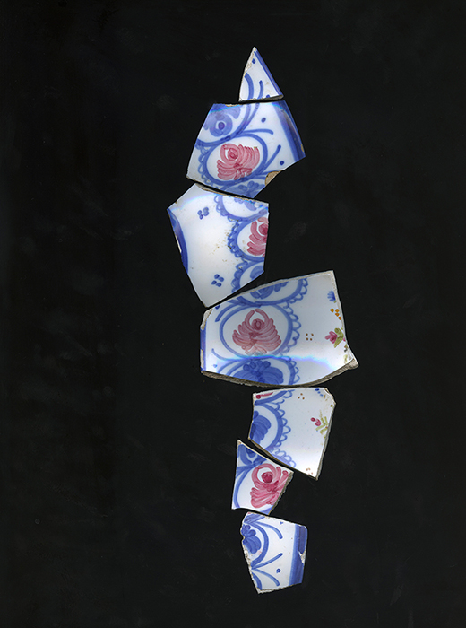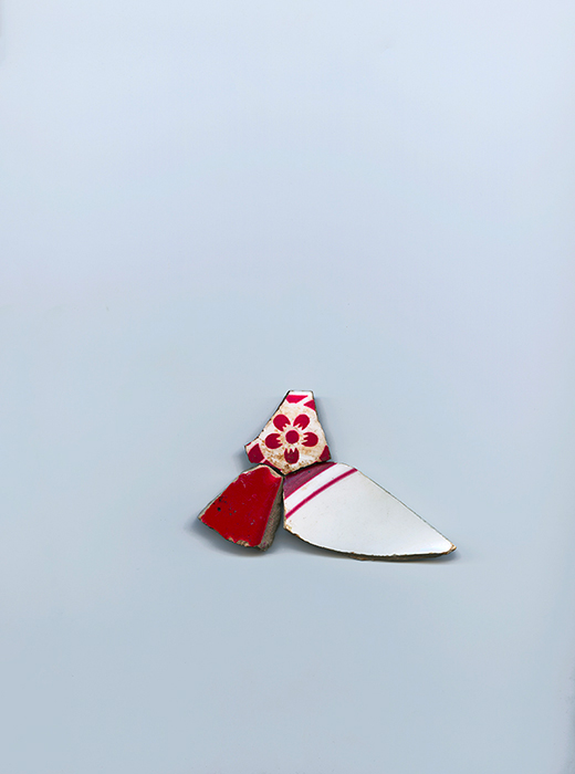 Format 36 x 45 cm, tirage pigmentaire sur papier Hahnemühle, tessons collectés sur les chemins de campagne dans l’Hérault, hiver/printemps 2019 |