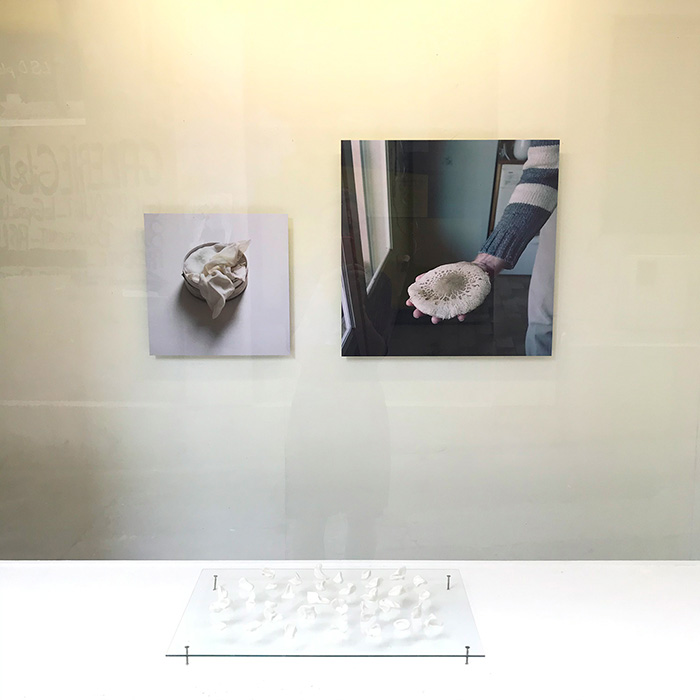 | Composition pour la vitrine de la galerie, Mies, 34 pièces en porcelaine, 2016 |