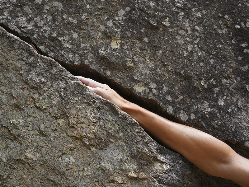 C’est l’étroite zone de contact entre un corps et la paroi qui permet d’approcher le rocher autrement que par la vue. Elle rend palpable une observation de la vie du rocher, de sa surface, de la végétation qui y loge, des dépôts minéralogiques, d’une vie animale qui vit dans sa proximité. Je cherche des porosités entre la peau et celui du rocher, j’aime le vivre comme une entité avec son caractère, ses humeurs et sa vie intérieure. |