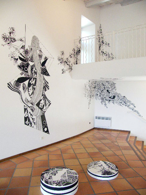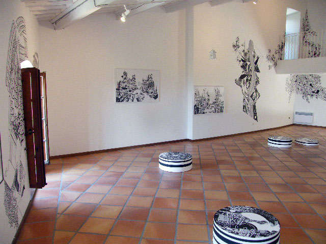 | Vues de l'exposition Emprunter le paysage, Chapelle de Lurs, avec le Frac Paca, 2010 |