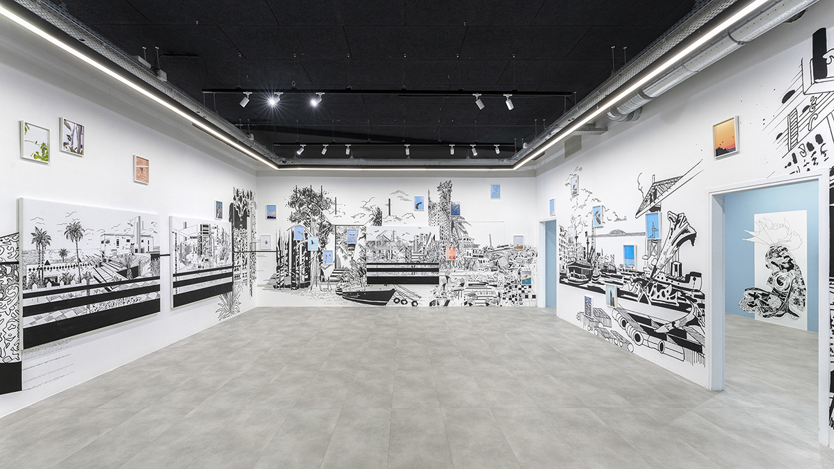 Pour le Drawing Lab, Chourouk Hriech déploie une géographie métaphorique reliant Bangkok à Casablanca, Tokyo à Marseille, une ville-monde dont les oiseaux seraient les premiers habitants. Ses visions kaléidoscopiques se télescopent dans l’espace entièrement investi par le dessin en noir et blanc, qui s’étend de l’échelle de la feuille à celle du mur ; ainsi que dans des installations immersives et des vidéos. Un cheminement foisonnant qui incite à la rêverie et à la déambulation, ainsi qu’à une expérience corporelle et mentale de l’espace, métamorphosé en un « nouveau milieu » : ici les règnes animal, humain et végétal se confondent à des stratifications de villes et de paysages.