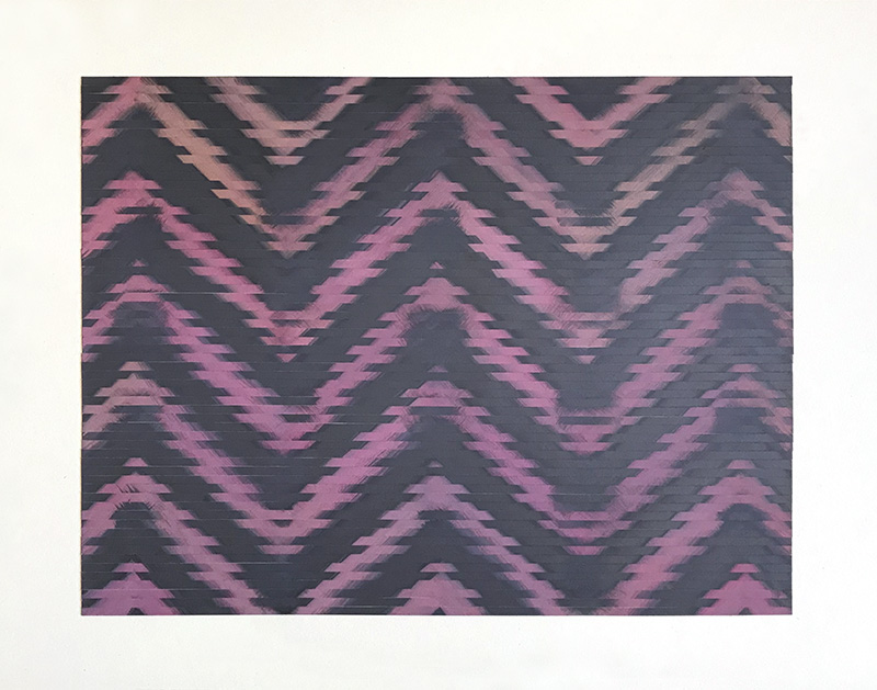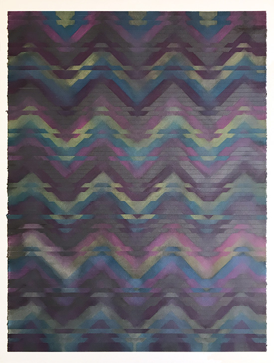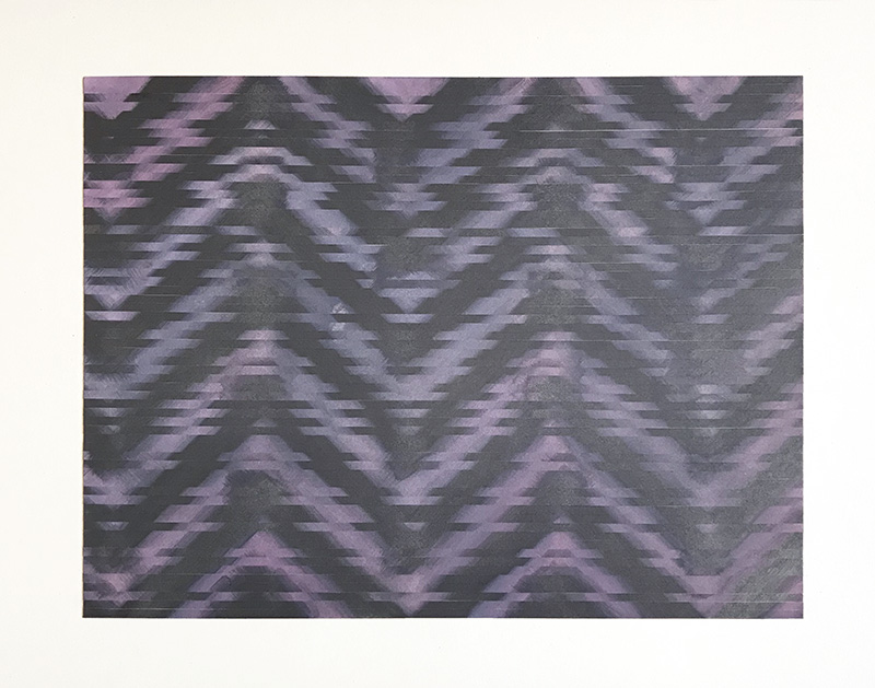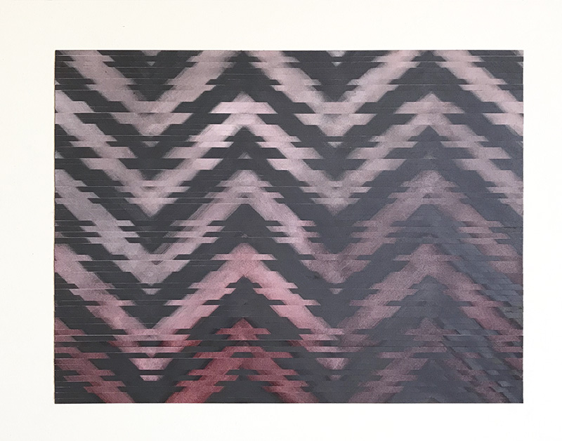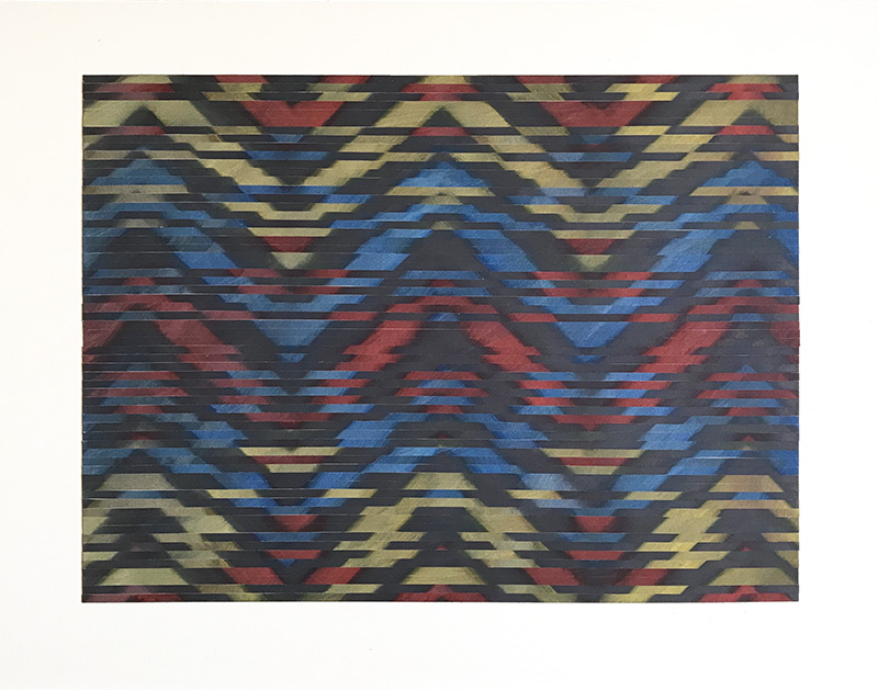 Gouache, crayon de couleur aquarellable et mine graphite aquarellable sur papier dessin découpé par bandes de un centimètre et recollées sur carton bois