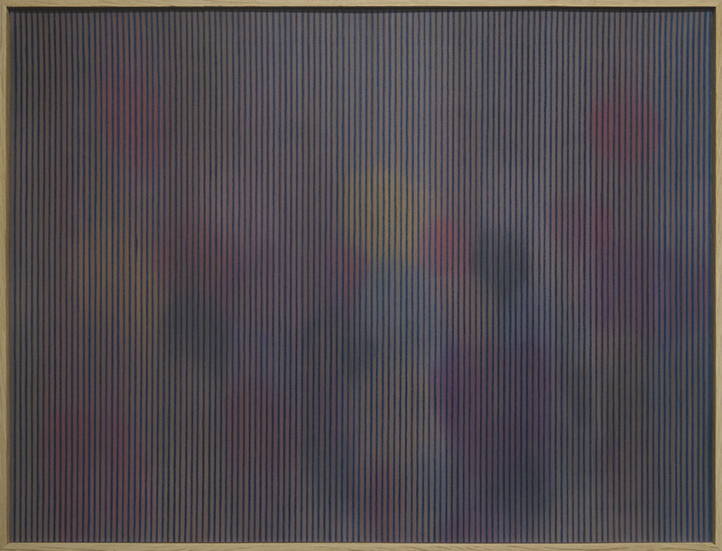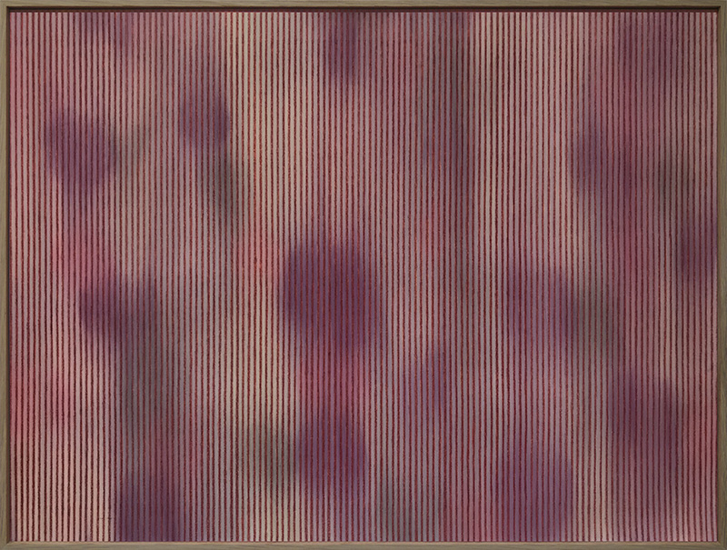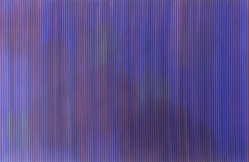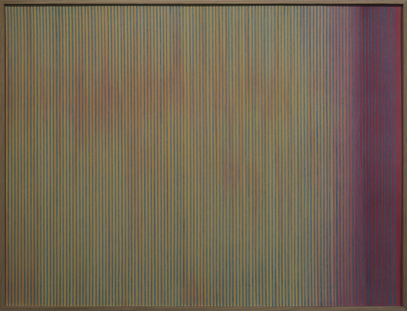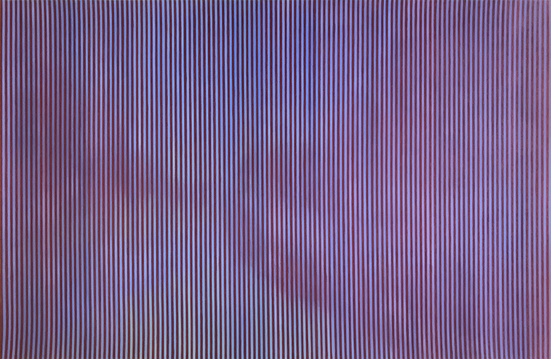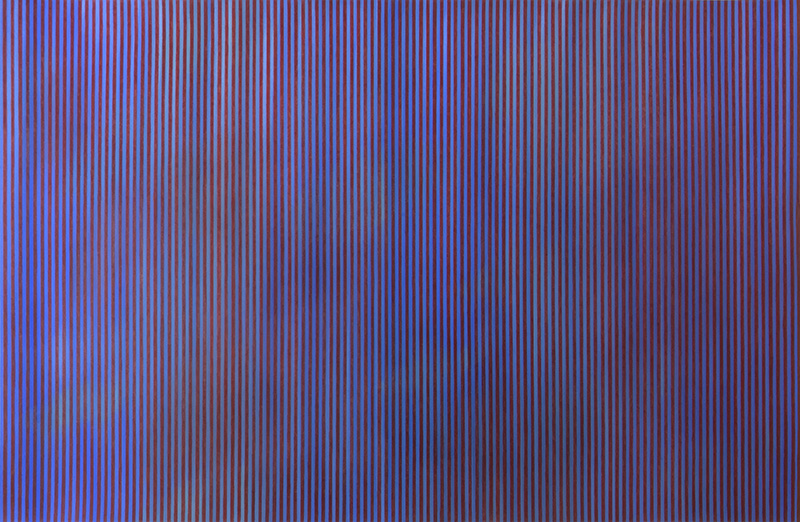 Les lignes verticales sont quant à elles réalisées en toute fin en reprenant quelques teintes du fond. Un recouvrement cette fois-ci partiel pour créer des vibrations colorées.