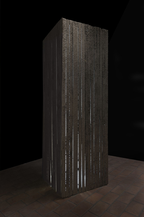 Bois, résine, ciment et système lumineux, 230 x 80 x 80 cm