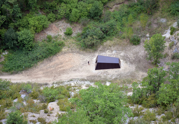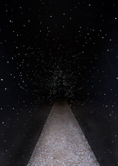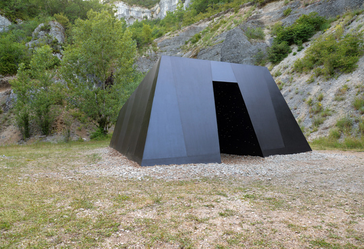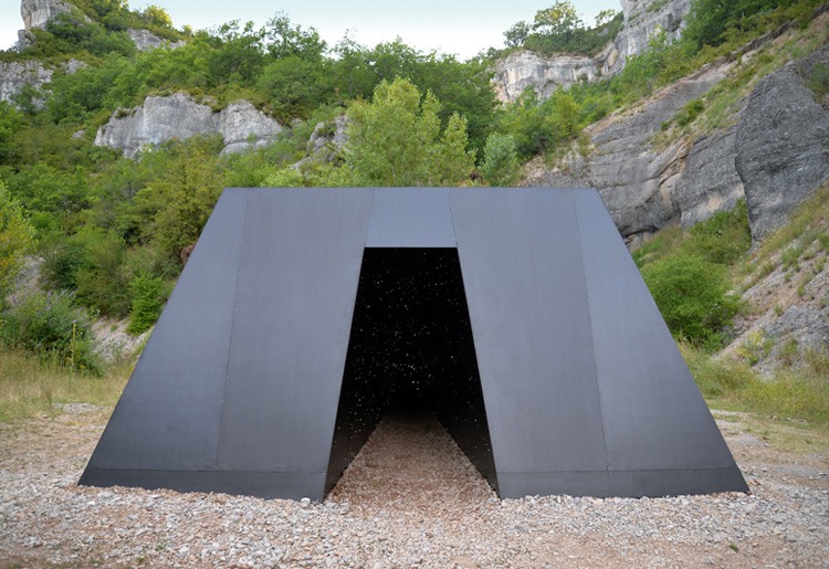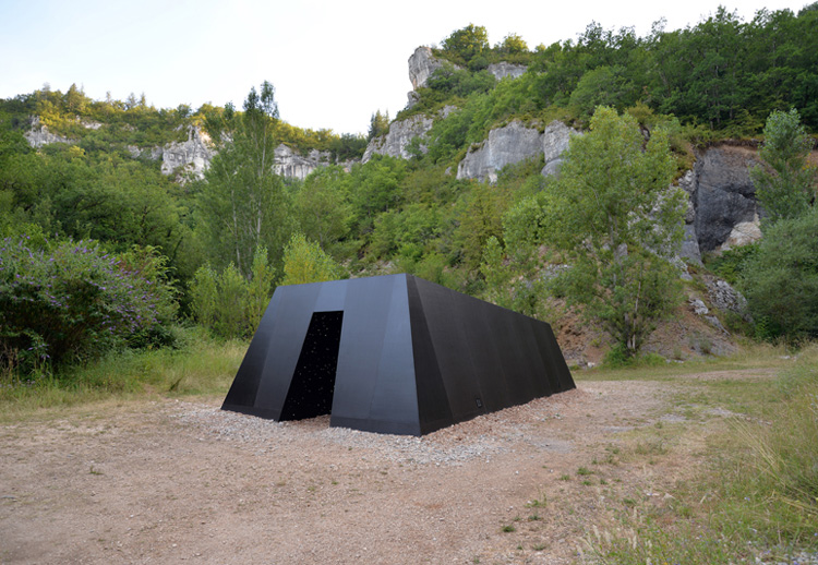 Négociation 82 - Meta 2016 Metal, bois, fibres optique et modulateurs, 300 x 500 x 800 cm Exposition Exoplanète Lot, avec les résidences Daura et le Centre d’art Maison Georges Pompidou, Cajarc, France