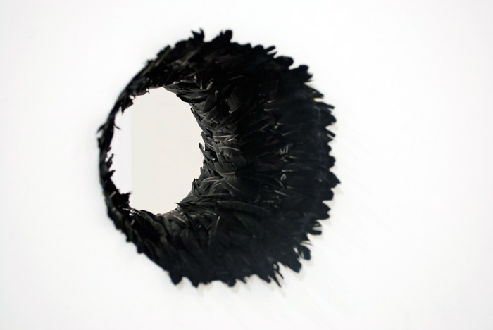 Résine, plumes d'oies, 18 x 18 x 35 cm