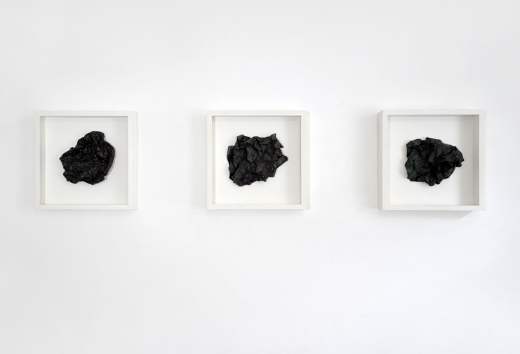 Pierre noire, pastel et acrylique sur papier, 35 x 35 cm chaque