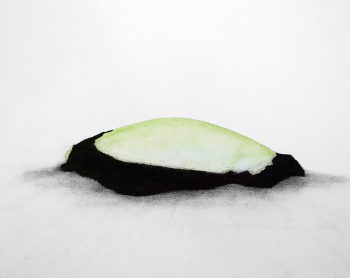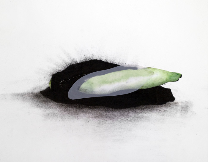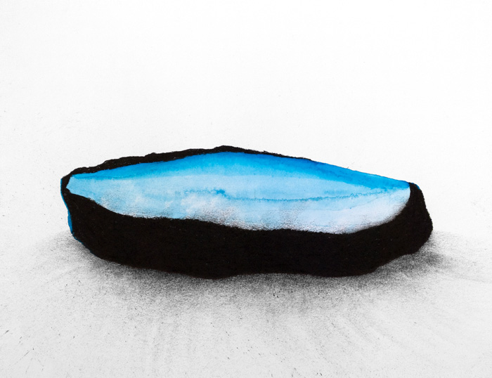Aquarelle, pierre noire et pigments sur papier, 24 x 30 cm