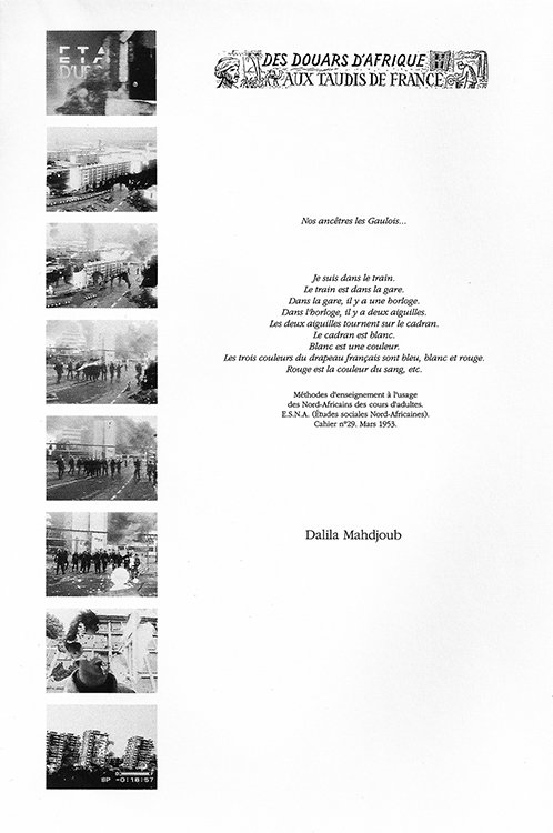 Proche des lieux de vies et de création tels que la compagnie dans le quartier de Belsunce et des figures de proue comme Christine Breton, Martine Derain et Raphaëlle Paupert-Borne, Dalila Mahdjoub fait partie d’une communauté d’action et de réflexion productive au plus proche du réel du passé et d’aujourd’hui. L’hospitalité et la proximité sont au rendez-vous de leurs projets individuels ou collectifs, incitant à des résistances à l’égard des statuts quo malencontreusement ancrés qui sapent avec une constance cynique le respect de l’altérité.