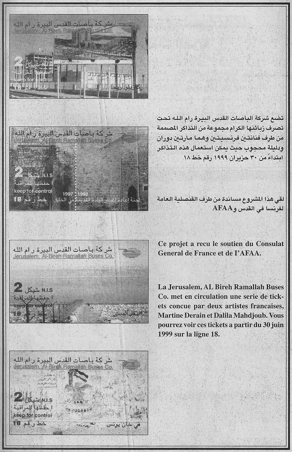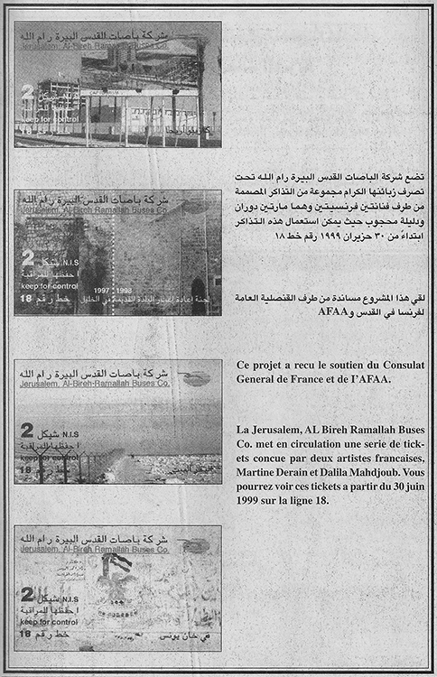 | Annonce parue dans le quotidien Al-Ayyam, pendant la durée de circulation des tickets : du 30 juin à fin juillet 1999 |