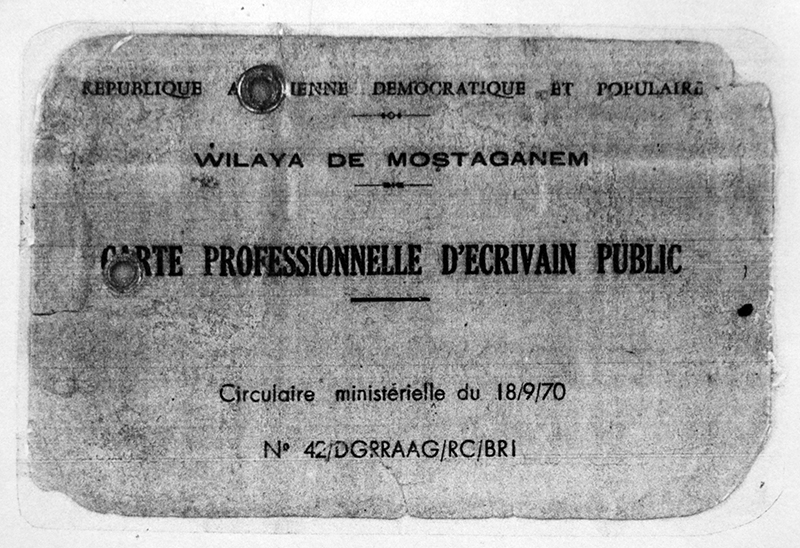 En 1994, j’ai rencontré Ben, écrivain public à Noailles. C’est alors que j’ai constaté la présence de nombreux écrivains publics au centre-ville de Marseille : Noailles, Canebière, rue d’Aix, Hangar J4 – lieu de départs pour l’Algérie - sur le port autonome de Marseille… Un petit inventaire en construction… Par la suite, plusieurs images ont été réalisées, notamment entre 1999 et 2000 par : Youcef Soltani (Nigéria), Isabelle Massu (Cambodge), Martine Derain (Jérusalem), Naïma et Saïd Soltani (Sétif), moi (Gaza).